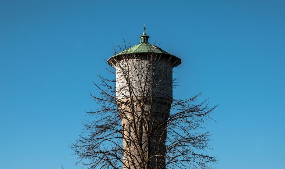De toren was oorspronkelijk van baksteen, met een houten reservoir. In 1961 is de toren verbouwd en in zijn geheel met beton bekleed.